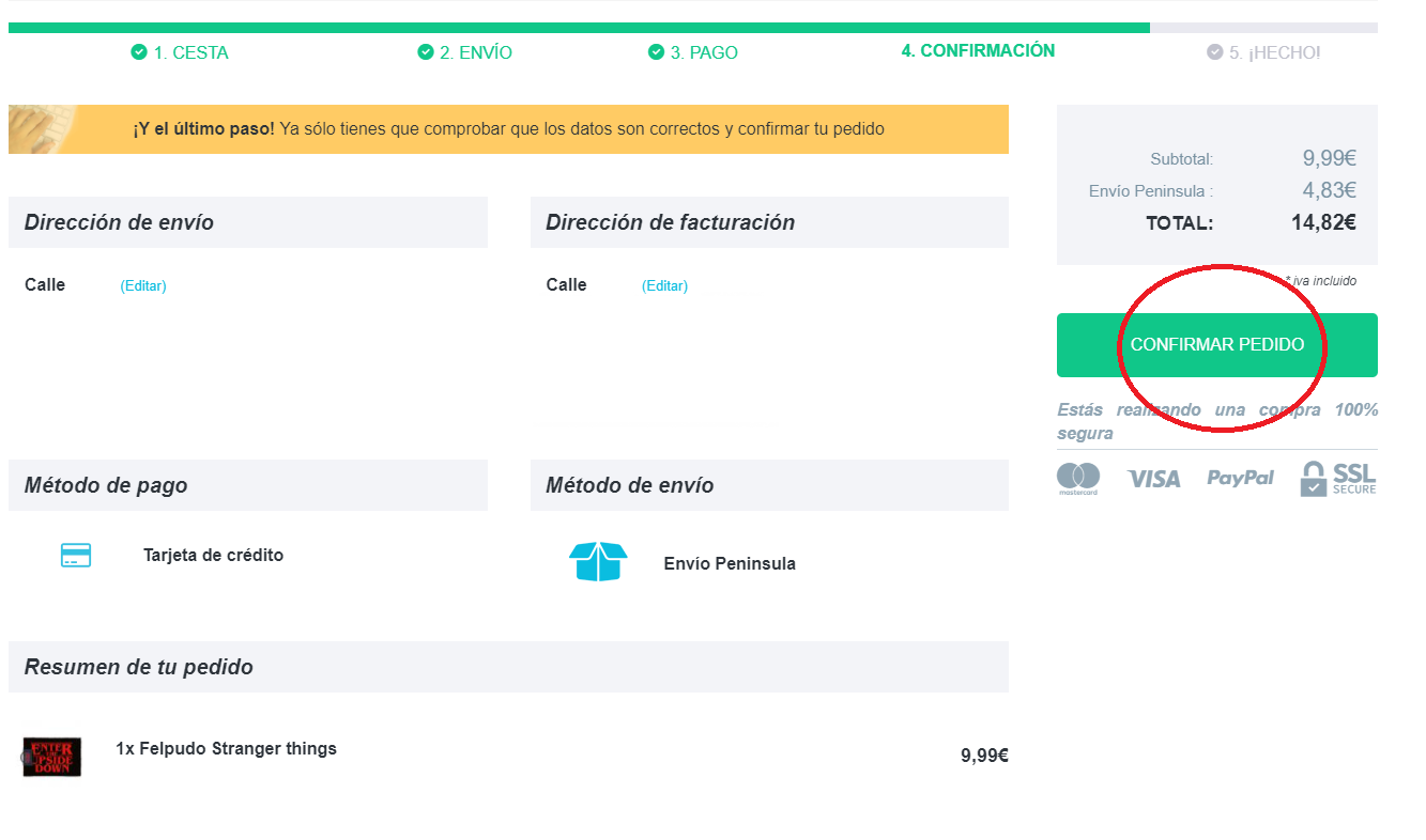 3. Ya casi lo tienes, comprueba que has comprado los artículos que querías y da a "Realizar pedido"