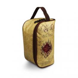 Este bonito neceser de la genial saga de Harry Potter, ha sido diseñado de forma muy especial, ya que el material del que está hecho y su textura imita al famoso Mapa del Merodeado​r, es bastante grande para que puedas meter todo lo que necesites. Además, tiene un asa para que lo lleves cómodamente Un gran regalo para todos los fans de esta saga de películas y libros que ha traspasado generaciones.  Mide 25cm aproximadamente Licencia oficial