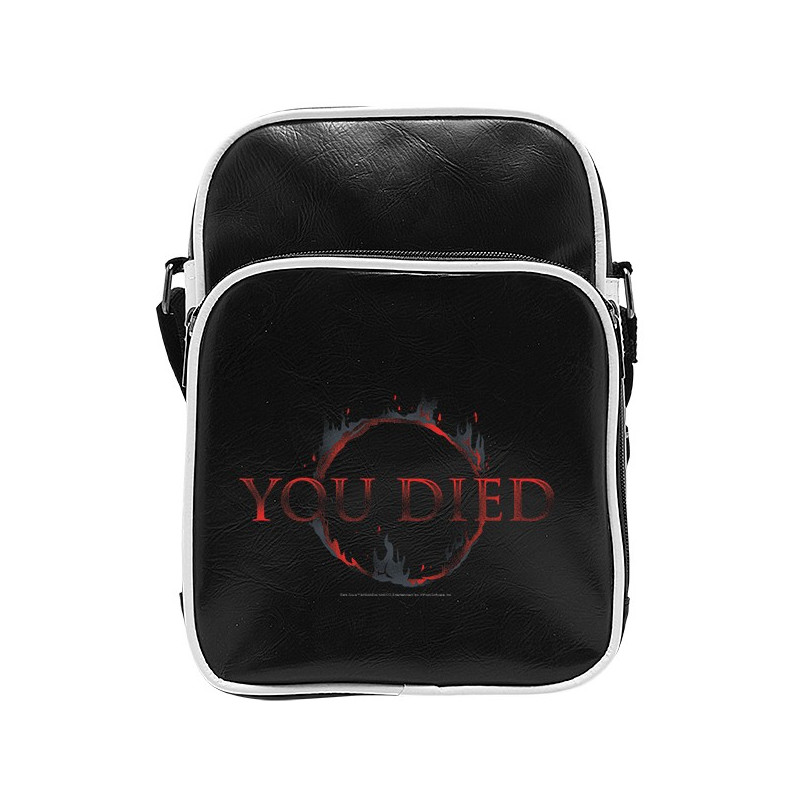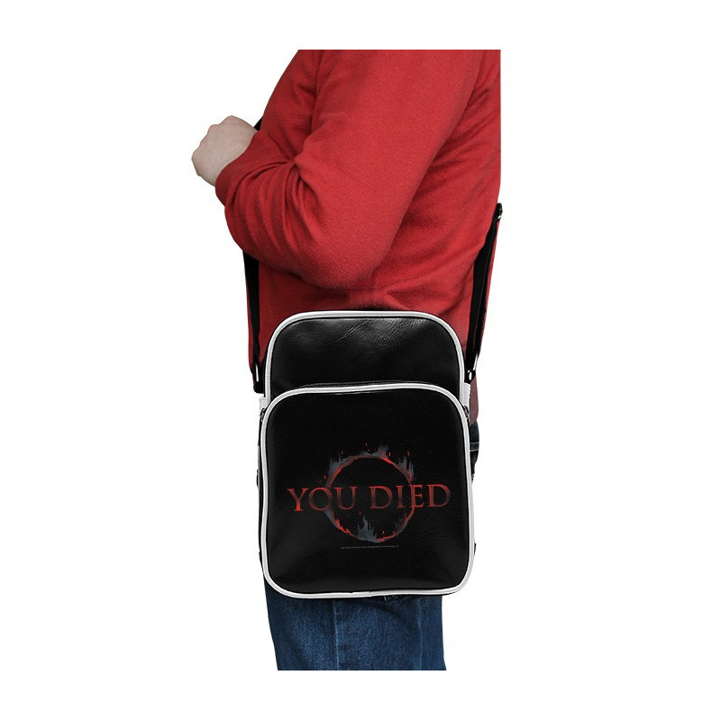 Si te has pasado horas jugando a este espectacular videojuego, te encantará llevar esta bandolera. Con su diseño mítico "You Died" sobre un fondo negro y ribetes en blanco, es una bandolera con mucho estilo. Su correa es ajustable para que puedas llevarla tanto a un lado como cruzada. Está fabricada con materiales sintéticos y mide 20x27x7cm