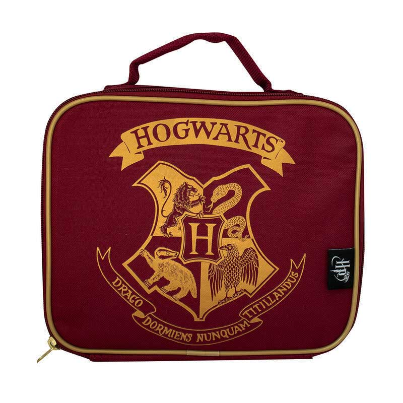 Elegante bolsa portaalimentos inspirado en la saga de Harr Potter con el escudo de Hogwarts en dorado y granate. Además, su interior está revestido con un material isotérmico para que tu comida y bebida se mantenga siempre a la misma temperatura.