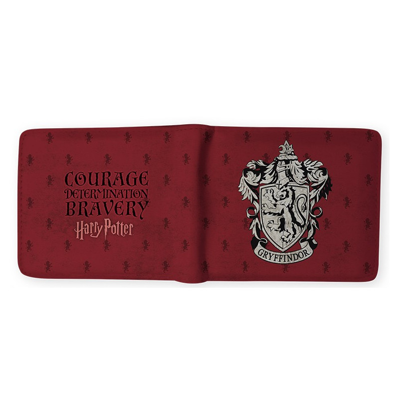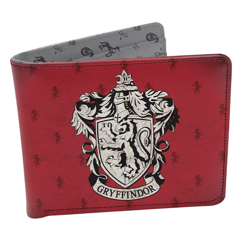 Cartera de la saga Harry Potter que destaca por su bonito diseño en color rojo y gris con el gran escudo de Gryffindor, y su mascota el león. Está fabricada en polipiel y mide 11x9,5cm, por lo que tiene un tamaño perfecto para llevarla en el bolsillo. Por dentro, tiene varios compartimentos para guardar tanto los billetes como las monedas.