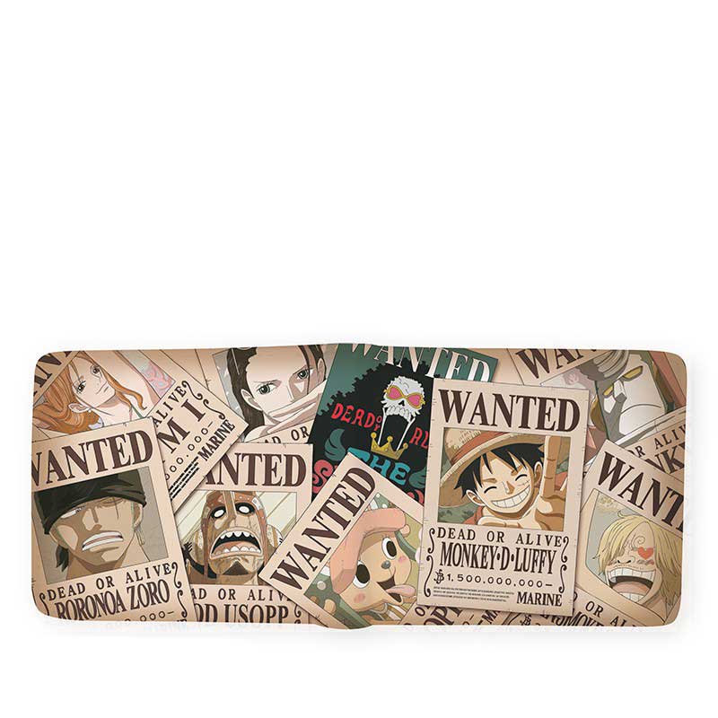Una bonita cartera con un diseño único de "se busca" a la tripulación de Luffy, de One Piece. Está fabricada en vinilo de gran calidad y fácil de limpiar. Por dentro es negra y tiene varios compartimentos para que guardes los billetes, tarjetas y un mondero. Mide aproximadamente 11cm. Producto con licencia oficial