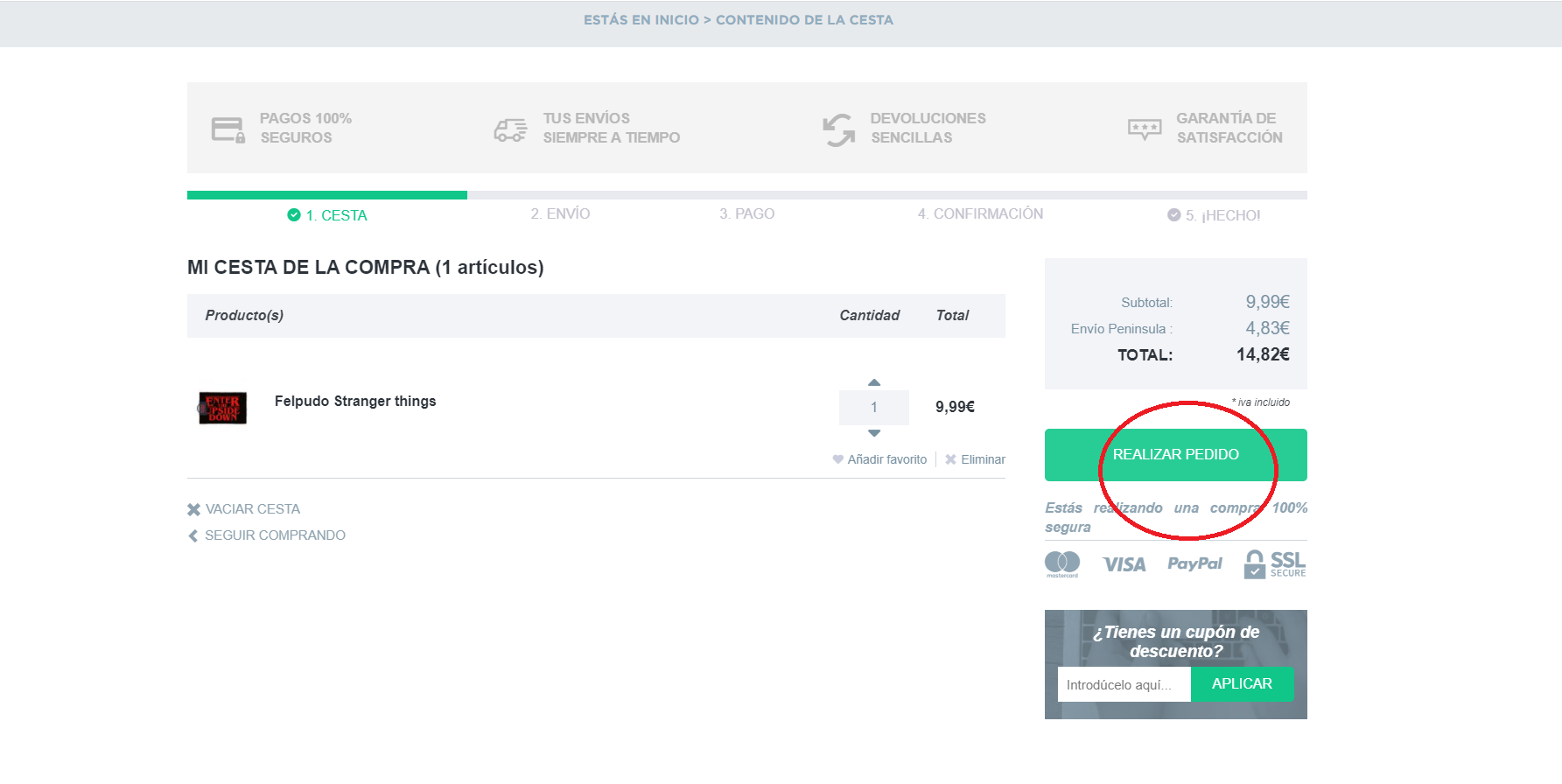 3. Ya casi lo tienes, comprueba que has comprado los artículos que querías y da a "Realizar pedido"
