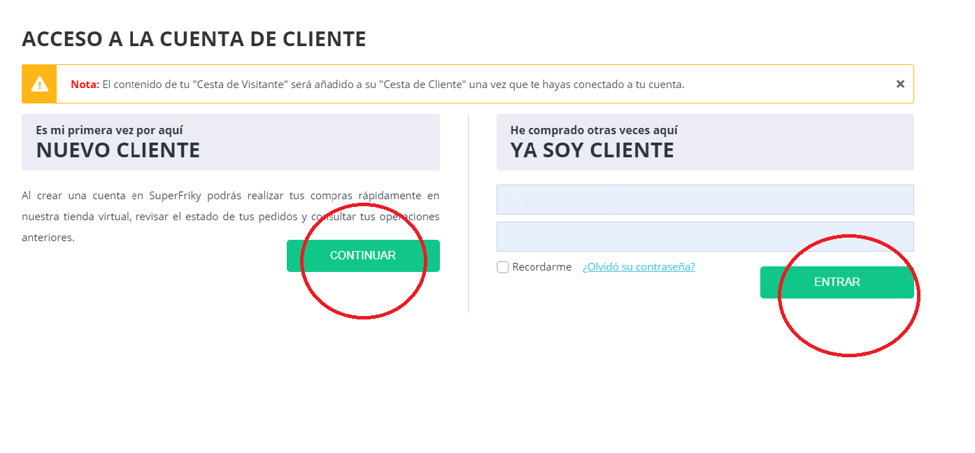 4.Si ya eres cliente, sólo tienes que introducir tu correo electrónico y contraseña, si es la primera vez que compras en nuestra página tienes que registrarte, ¡ Sólo se tarda 1 minuto !