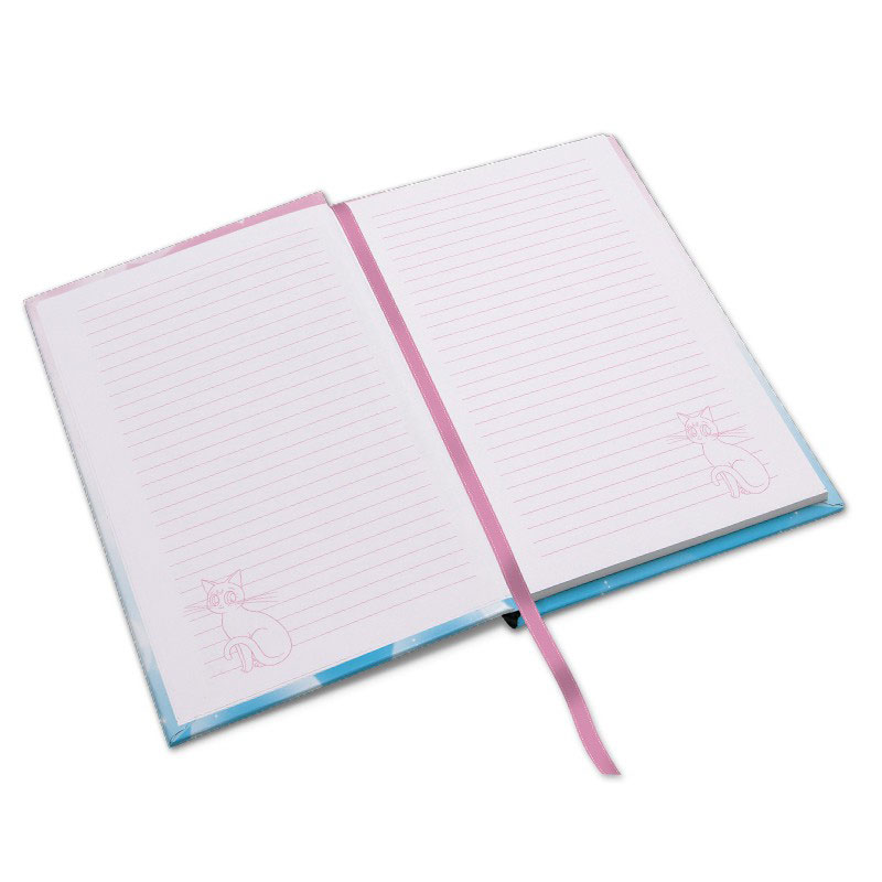 ¡Un precioso cuaderno de las guerreras de Sailor Moon! Tiene un diseño muy bonito tanto en la portada, como por dentro: todas las páginas son en rosa y viene la gatita luna. La portada es de cartón duro, tiene 180 páginas y es de tamaño A5, 21,7X15X5cm. Tiene licencia oficial