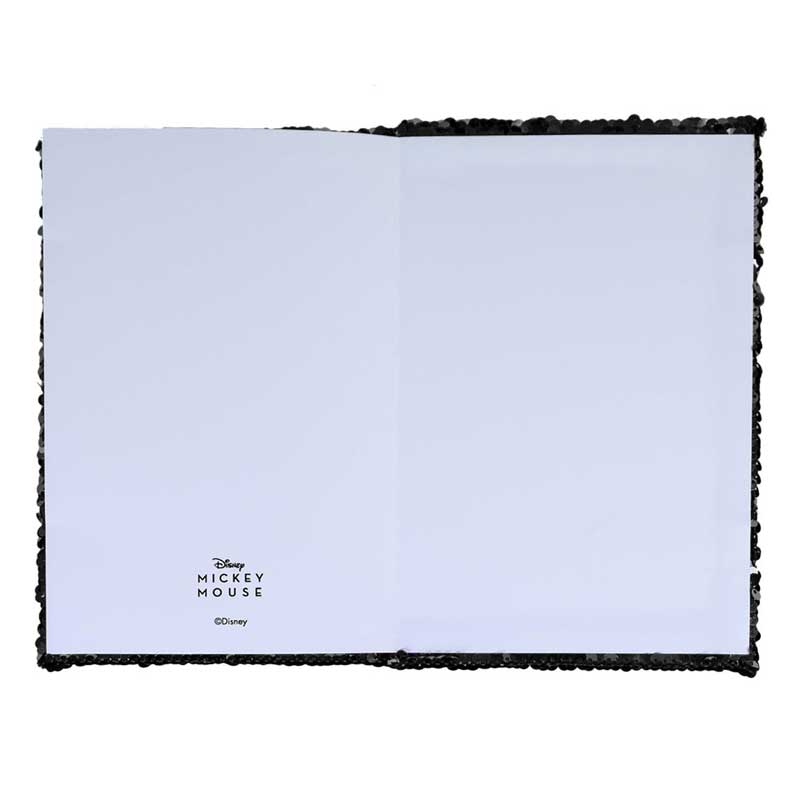 Un cuaderno de lentejuelas del ratón más famoso de Disney, Mickey Mouse. Cambia de colores cuando tocas las lentejuelas. Tiene calidades premium y es de tamaño A5