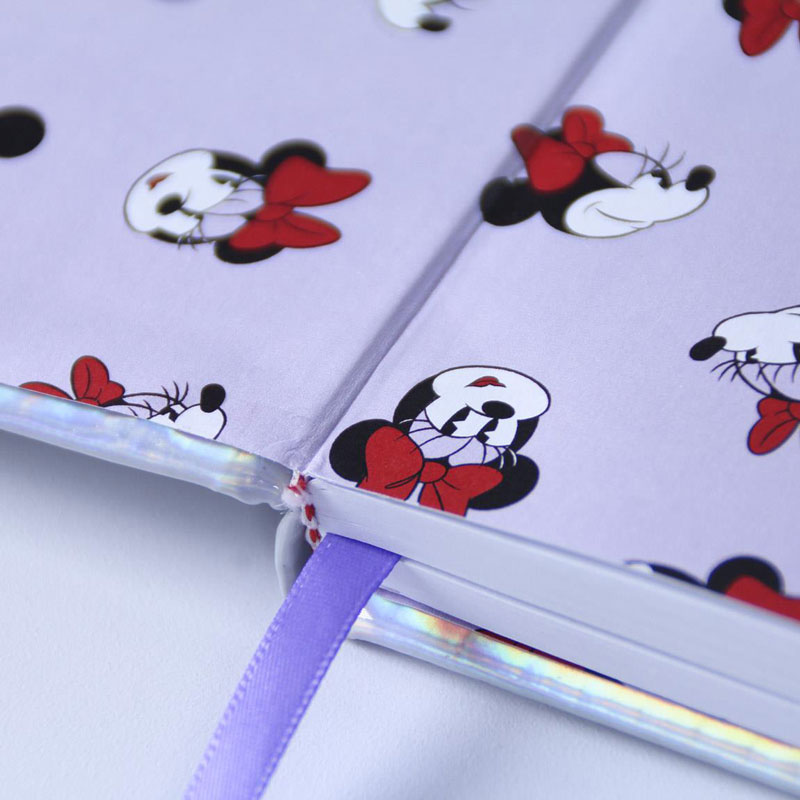 ¡Mira que cuaderno tan bonito!. Un producto con licencia oficial de Disney. Tiene un precioso diseño de la carita de Minnie con un efecto metalizado. Un regalo para sorprender a un fan de Disney
