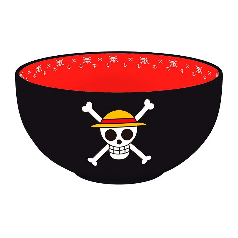 Empieza el día desayunando en este elegante cuenco de One Piece. Un diseño que no pasa desapercibido, por fuera es negra y hace referencia a los Piratas del Sombrero de Paja, y por dentro tiene grabado "One Piece".Está fabricado en cerámica de gran calidad y puedes utiliar el microondas y el lavavajillas, muy práctico.