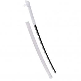 Impresionante réplica Katana como la misma que utiliza Ichigo Kurosaki cuando adotpa la forma de Shikai: Tensa Zagetsu. Tiene el mango encordado en negro y la hoja es de acero en negro Tamaño total: 102 cm Tamaño de hoja: 68 cm Grosor de hoja: 3,8 mm Réplica no oficial Con soporte Una auténtica joya para los coleccionistas de Katanas o seguidores de Demon Slayer