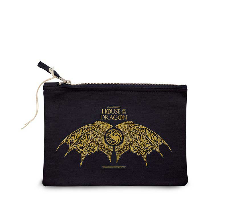 Genial estuche que también te puede servir como neceser, de la próxima serie Casa del Dragón. Su elegante diseño está inspirado en la casa Targaryen, además, es muy práctico porque tiene varios compartimentos con cremallera, para guardar todo lo que necesites