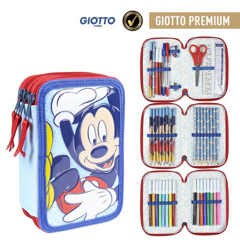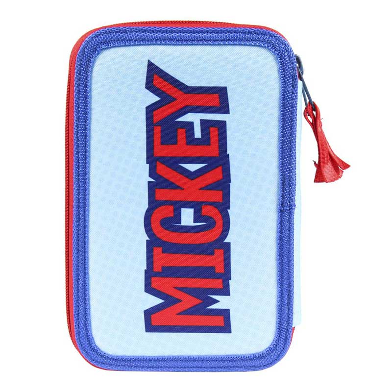 ¡Mira que estuche escolar triple!. Tiene un precioso diseño de Mickey sonriendo. Gracias a sus tres alturas, tiene un montón de rotuladores, pinturas etc. perfectos para el cole