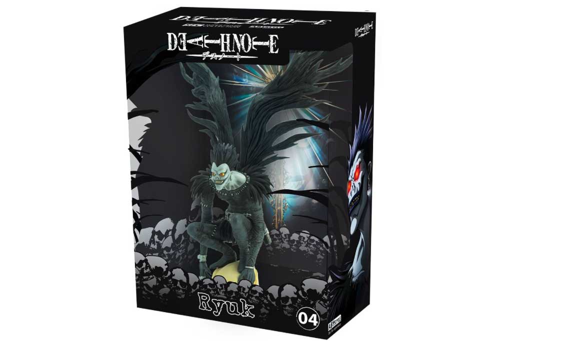 Figura hiperrealista del mítico Shinigami Ryuk con muchísimos detalles impresionantes, pintada al máximo detalle. Mide aproximadamente 30cm hasta sus imponentes alas extendidas. Además, viene en una elegante caja con una impresión que te sorprenderá. Es una figura digna de coleccionista para los amantes de esta mítica serie de anime y manga así como un regalo para impresionar a cualquier fan