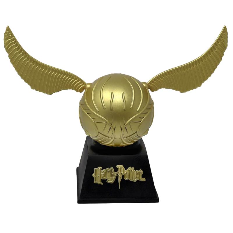 ¡Hemos atrapado a la Snitch dorarda para ti!. Es una espectacular hucha fabricada en pvc, que reproduce perfectamente a esta bola tan importante en Quidditch. A simple vista, parece una pequeña escultura, pero se trata de una hucha para que puedas ahorrar de una forma divertida. Mide 20cm.