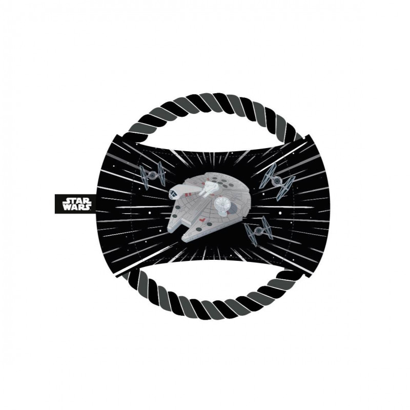 En Superfriky no nos hemos olvidado de tu mejor amigo, ¡Mira que Juguete de Star Wars para que tu perro y tú lo paséis en grande!. Además, también le ayudará a fortalecer los dientes. Por un lado tiene el logo de la saga y por el otro, el mítico Halcón Milenario. Producto con licencia oficial