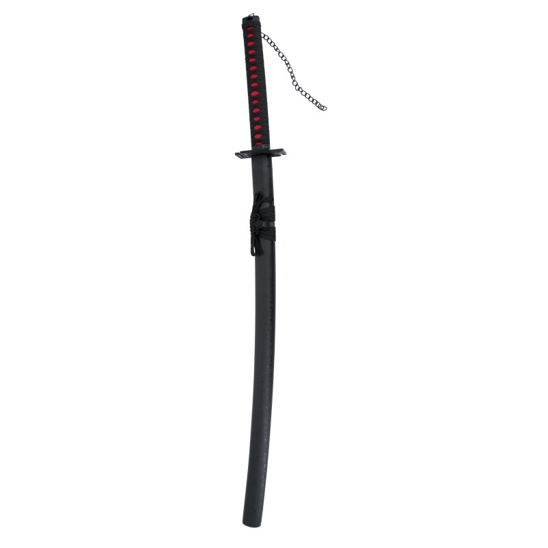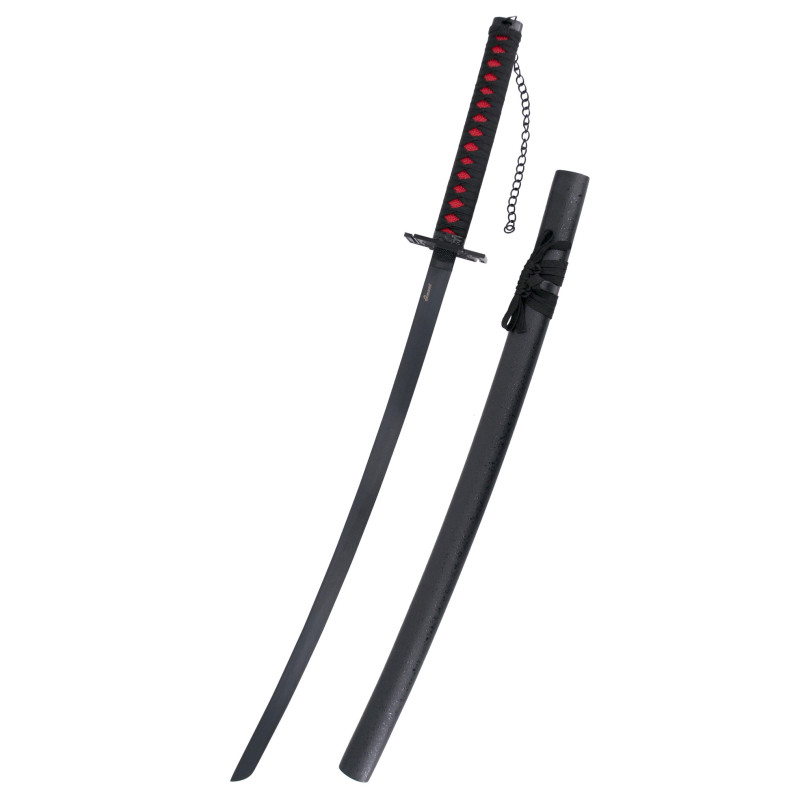 Impresionante réplica Katana como la misma que utiliza Ichigo Kurosaki cuando adotpa la forma de Shikai: Tensa Zagetsu. Tiene el mango encordado en negro y la hoja es de acero en negro