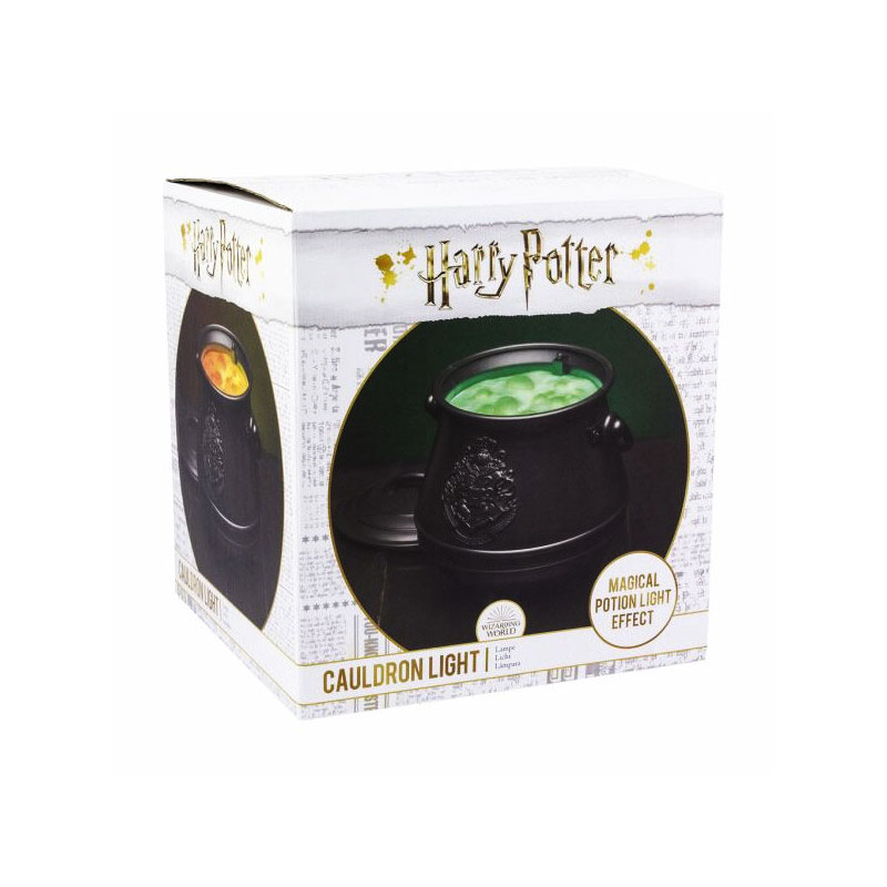 ¡Mira que pasada de lámpara! Es una genial réplica del caldero mágico de los libros y películas de Harry Potter. Al abrir la tapadera del caldero éste va cambiando de color naranja, verde y morado, ¡Asegúrate de hacer bien la poción!. Dale un toque a tu habitación con esta luz de ambiente única
