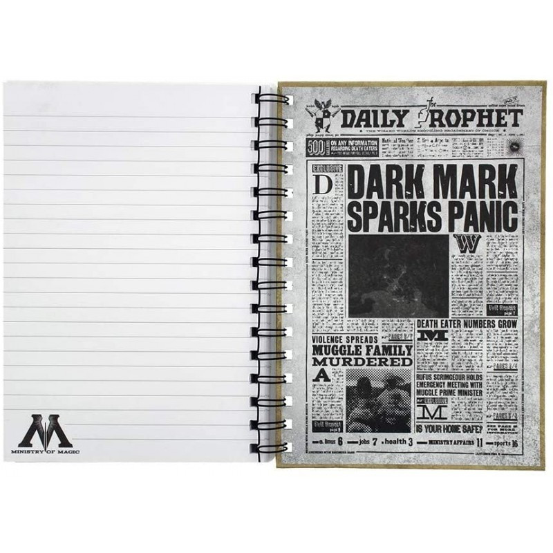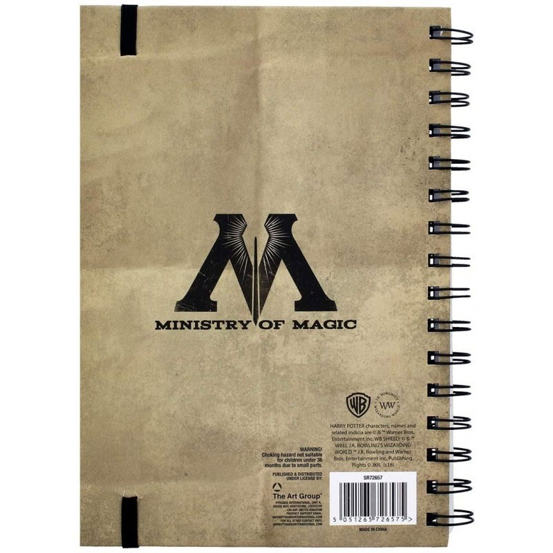 ¡Una libreta con mucha magia! Gracias a su efecto lenticular en 3D, cuando mueves la portada se ven los dos carteles más famosos de esta saga: "Indeseable nº1", y "¿Has visto este mago?". Además, por dentro todas las páginas tienen el símbolo del Ministerio de la Magia en una esquina, y al final de la libreta, hay una imagen ejemplar del periódico mágico Daily Prophet. Mide 21x15cm. Licencia oficial