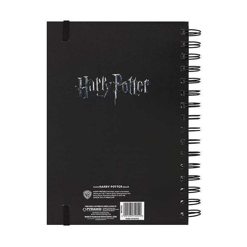 ¿Has visto a este mago? Una fantástica libreta inspirada en el famoso cartel de Sirius Black de la saga de Harry Potter y el prisionero de Azkaban. Por dentro es aún más espectacular: en el lado de la portada y contraportada viene una imagen del castillo de Hogwarts con el mapa del merodeador, y todas las páginas traen líneas con el logo "Harry Potter" en una esquina