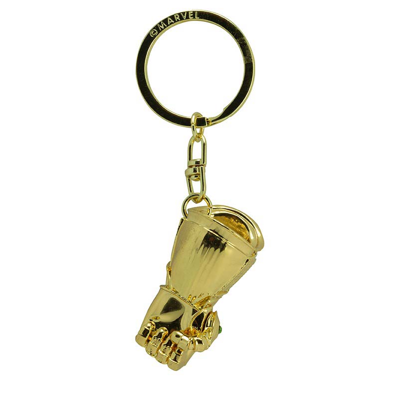 ¡Una joya de llavero en 3D!. Se trata del guantelete del Infinito de Thanos con las cinco gemas, fabricado en metal de alta calidad y con un baño en dorado muy bonito. Mide 4,5cm aproximadamente