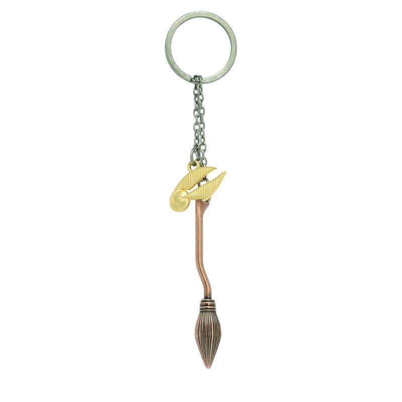 ¡Mira que pasada de llavero! Un detalle para regalar fabuloso para un fan de de Harry Potter. Se trata de la escoba Nimbus de Harry y la snitch dorada fabricado en metal con unos acabados en bronce y dorado realmente muy bonitos. Mide 7cm. Licencia oficial