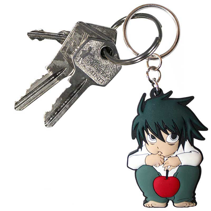 Llavero de L de la famosa serie de anime Death Note con una manzana para ganarse a un Shinigami. Está fabricado en goma de alta calidad, con unos acabados muy buenos y detalles al máximo. Mide 5cm aproximadamente