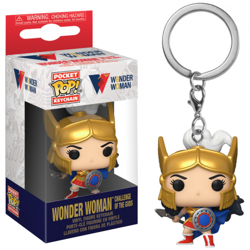 Este llavero de la línea Funko Pop! es una auténtica pasada. Si eres un auténtico fan de Wonder Woman, no puede faltarte este llavero de la amazona más poderosa y famosa en su versión del cómic Challenge of the gods. Todos los detalles han sido cuidados minuciosamente: el escudo, su traje, el casco y hasta su capa con efecto en movimiento. Mide 4cm y es de vinilo.