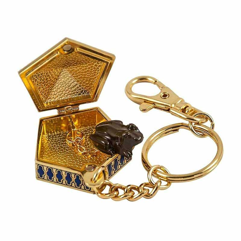 ¡Un llavero casi para comérselo! Se trata de un fabuloso llavero en forma de cajita metálica pentagonal en color dorado y azul. Se abre y se cierra con un imán, al abrirlo, te encontrarás con la famosa rana de chocolate que los protagonistas de Harry Potter compran en el carrito de los dulces del famoso Hogwarts Express, pero ¡cuidado que esta rana es de lo más realista pero no se puede comer!. El llavero mide 3x3,5cm. Licencia oficial