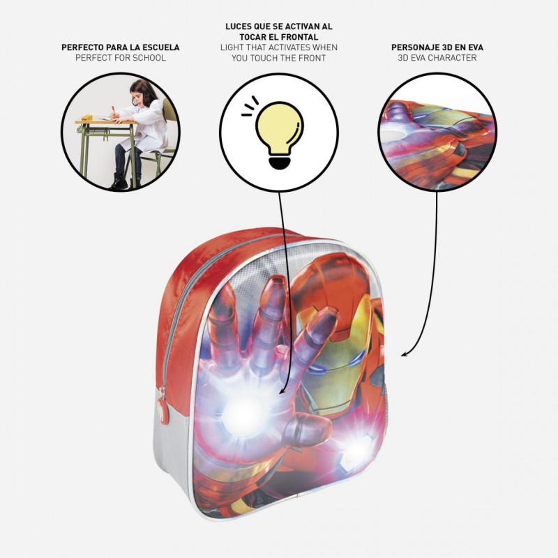Una genial mochila del super héroe Iron Man de Marvel. Al tocar el frontal, tiene luces, es una mochila muy chula. Un regalo muy práctico para que los más pequeños vayan al colegio acompañados de su super héroe favorito.