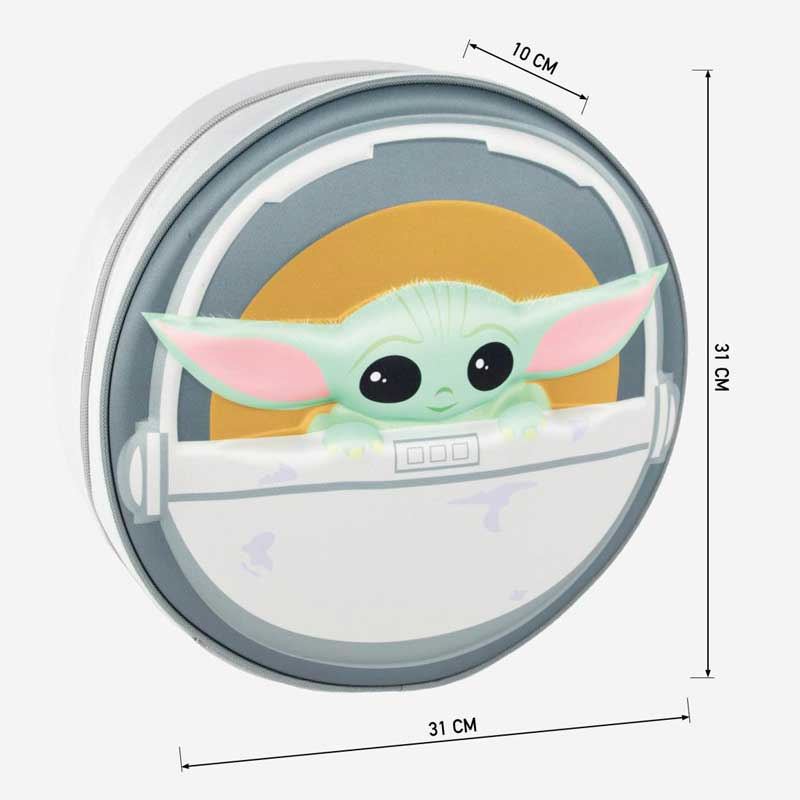 ¡Mira qué mochila tan chula! Aparece Baby Yoda metido en su capazo en efecto 3D. Es muy práctica para que los más peques vayan al cole cada día. Un súper regalo muy original