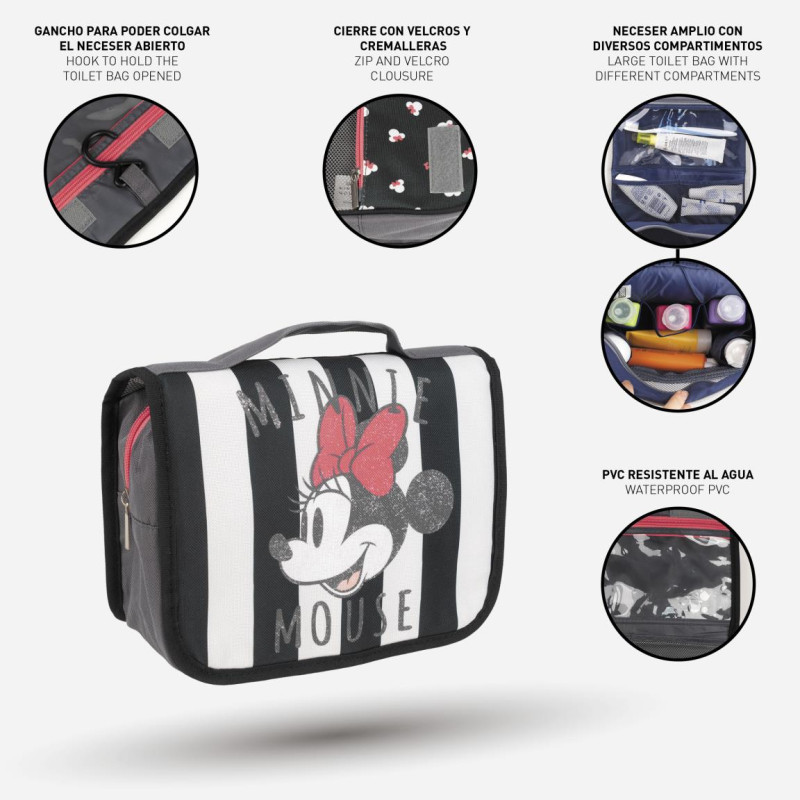 Precioso neceser de Minnie Mouse para usar en tus viajes o también como bolsa de cosméticos. Tiene un tamaño perfecto y en su interior un montón de compartimentos distintos