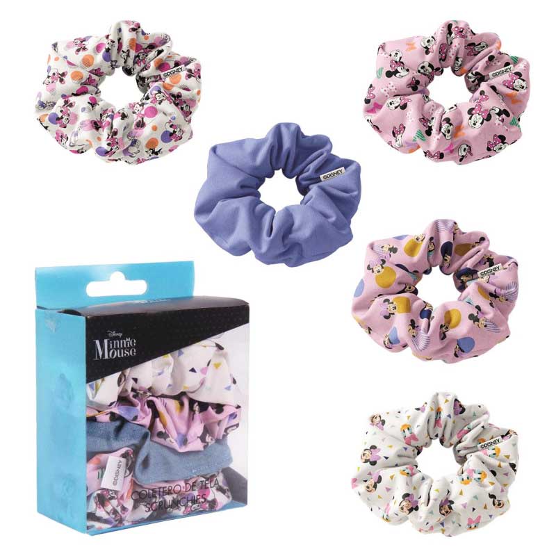 Un bonito pack con 5 coleteros distintos de tela con un diseño único de Minnie Mouse. Viene en una cajita perfecta para regalar