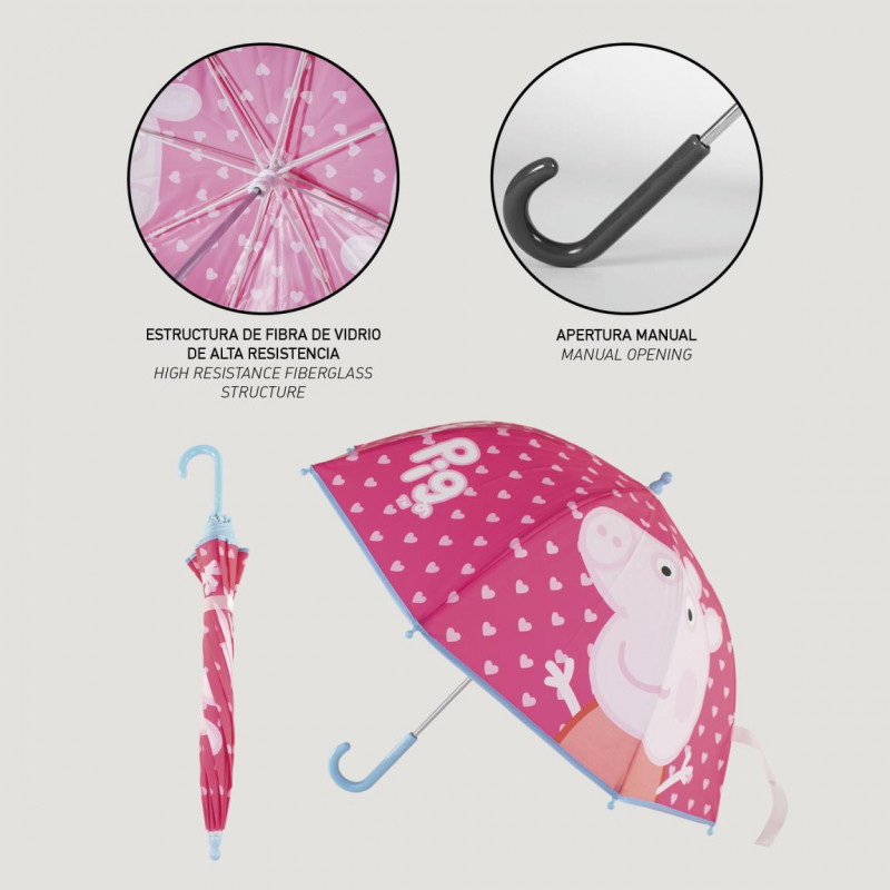 Un precioso paraguas de Peppa Pig para que los más pequeños no se mojen en los días de lluvia. Un regalo práctico y bonito para los fans de esta familia de cerditos tan simpática