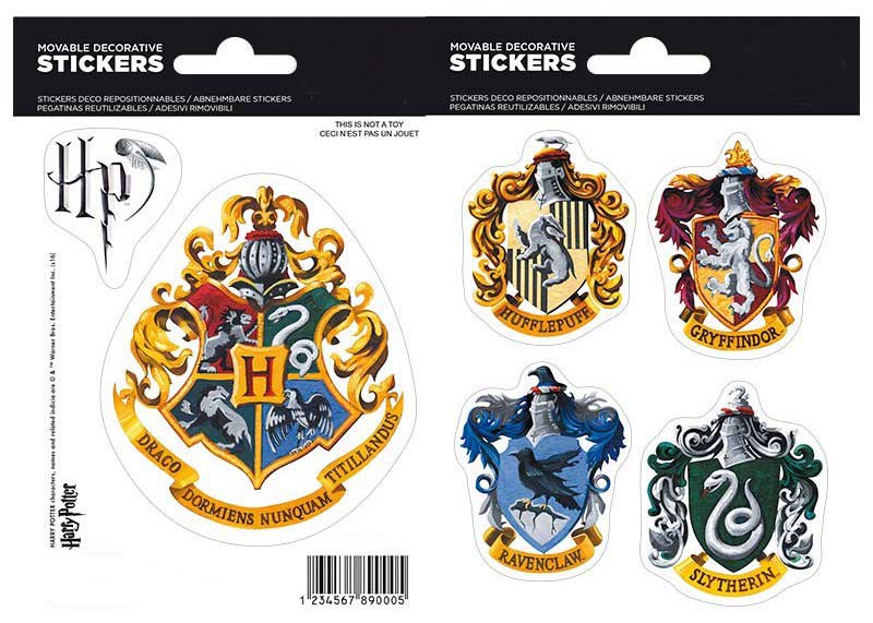 ¡Dale un toque friki a ordenador, móvil o lo que tu quieras! con este súper set de pegatinas del símbolo de Hogwarts y las cuatro casas. Un detalle que puedes regalar para que sorprendas a quien tu más quieras. Producto con licencia oficial
