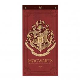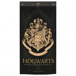 Elegante y original estandarte de tela fina para que lo cuelgues en tu rincón favorito de tu casa, y si tienes alguna visita, ¡Que sepan que ahí vive con orgullo un súper fan de Harry Potter!. Tiene un diseño muy bonito del escudo de Hogwarts con el fondo en negro. Además, viene con ojales para que sea más fácil colgarlo donde tú quieras Mide 47x95cm Licencia oficial