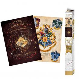 Set 2 Pósters Harry Potter Escudos y Mapa Merodeador
