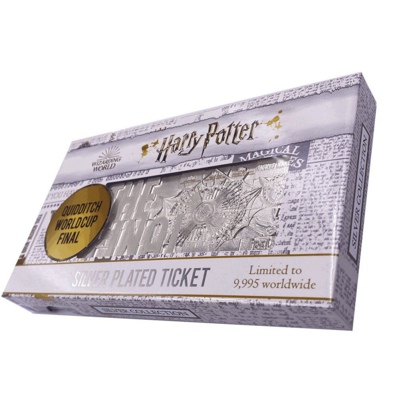¡Bienvenido a la copa mundial de Quidditch!. Una maravillosa réplica en metal chapada en plata con relieve efecto 3D, del ticket de la 422ª de la final de la copa mundial. Cuidado, porque son ediciones limitadas a 9995 unidades y cada una viene numerada. Además, ha sido diseñada a escala 1:1 con todos los detalles de la original