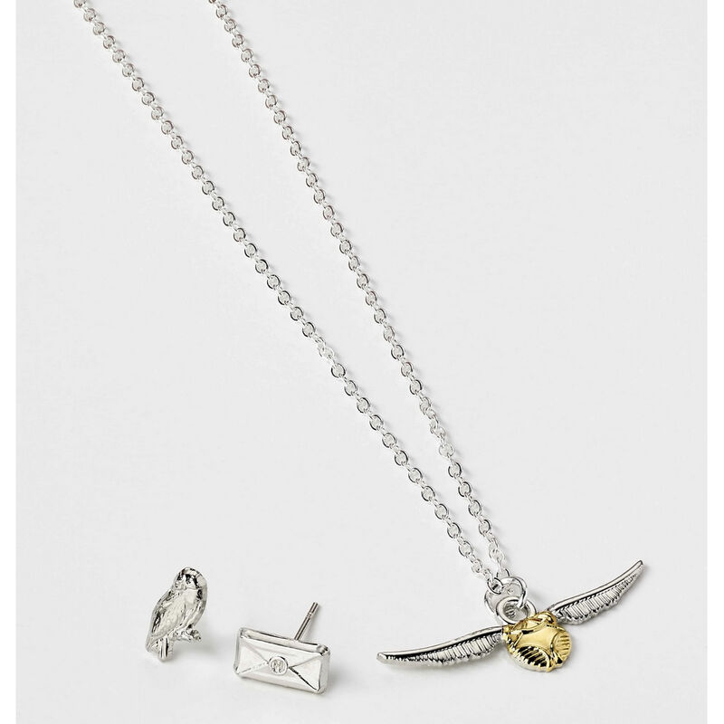 ¡Divertidísimo regalo en forma de los típicos crackers inspirado Hedwig! al tirar de los lados, saldrán artículos de joyería de Harry Potter, todo un acierto para regalar. En su interior, viene un precioso collar de la snitch dorada y un par de pendientes de Hedwig y otro del sobre con el símbolo de Hogwarts