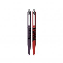 Elegante pack de 2 bolígrafos de la gran serie Stranger Things. Uno es de color rojo con el diseño de los protagonistas en sus bicis y el otro en morado, con el terrible azotamentes Licencia oficial Vienen en una caja de diseño perfecto para regalar