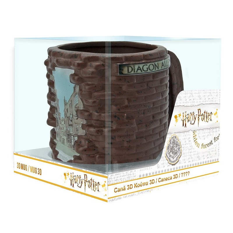 ¡Disfruta de tu cerveza de mantequilla como Harry y sus amigos! O de una buena bebida calentita. Una súper taza con diseño en 3D que imita a las paredes de ladrillo con una increible imagen del callejón Diagón. No se recomienda utilizar ni en el lavavajillas ni microondas, la magia se podría perder. Fabricada en dolomita