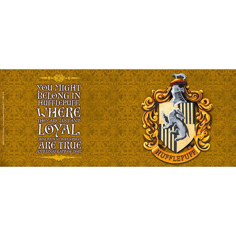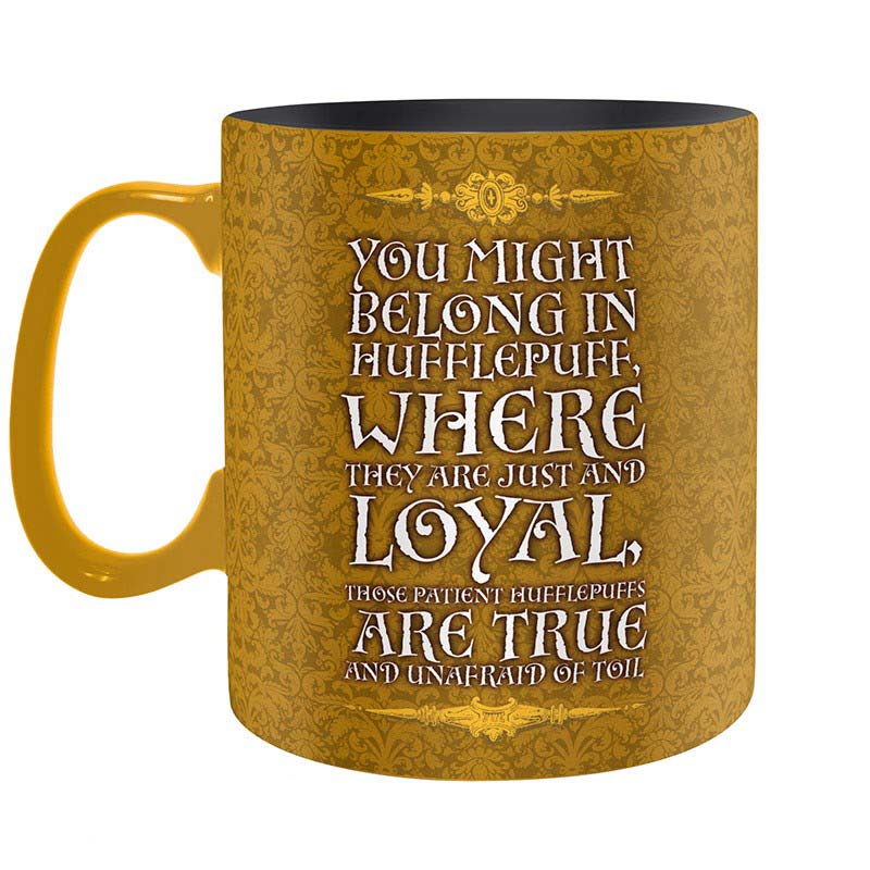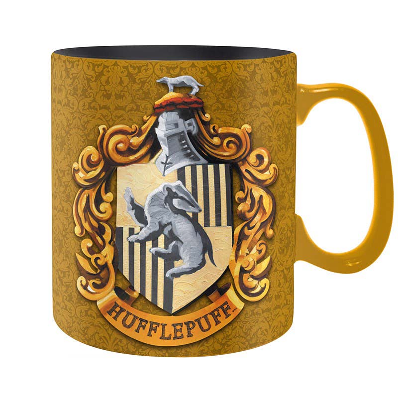 Siente los colores de la casa Hufflepuff desayunando cada mañana en esta súper taza. Tiene un espectacular diseño del escudo Hufflepuff con sus colores: amarillo y negro, y por el otro lado, está escrito su lema. Además, es apta para el lavavajillas y el microondas lo que resulta muy cómodo. Está fabricada en cerámica y su impresión es de alta calidad