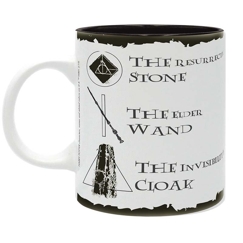 Siente el poder con esta taza en cerámica de las Reliquias de la Muerte. Tiene un diseño inspirado en los tres objetos mágicos de la saga de Harry Potter. Apto para el lavavajillas y microondas