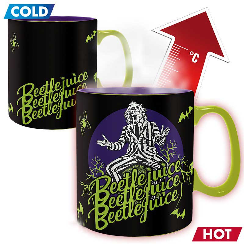 Una original taza térmica de Beetlejuice que cambiará su diseño cuando viertas tu bebida caliente favorita. Fabricada en cerámica de gran calidad. No se recomienda el uso de lavavjillas ni microondas ya que es térmica