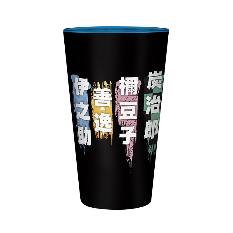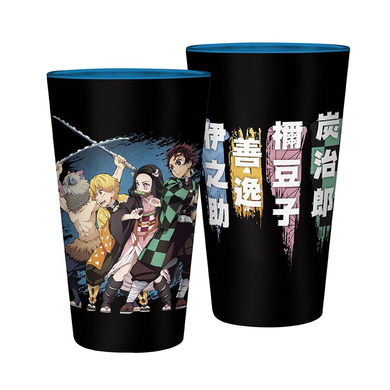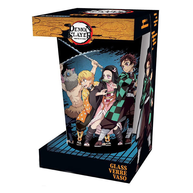 ¡Únete a Tanjiro, Nezuko, Zenitsu e Inosuke para acabar con los demonios! Un espectacular gran vaso de cristal de Demon Slayer