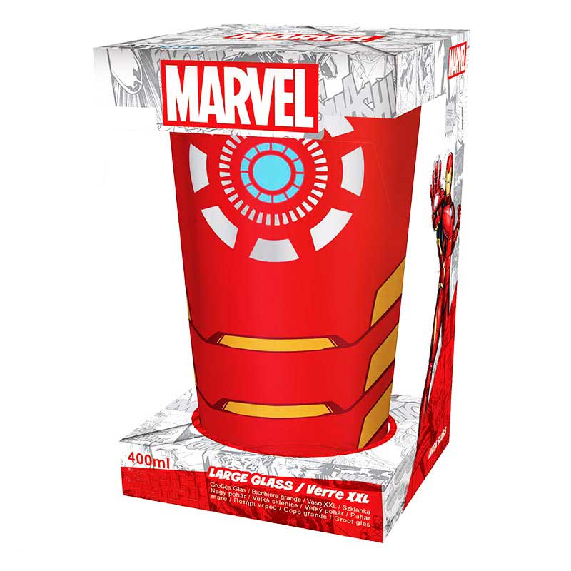 Elegante vaso con un diseño y colores inspirado en el genial superhéroe de Marvel, Iron Man